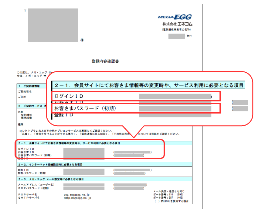 2023年10月以前にメガ・エッグ申込/メールアドレス追加の場合の登録内容確認書